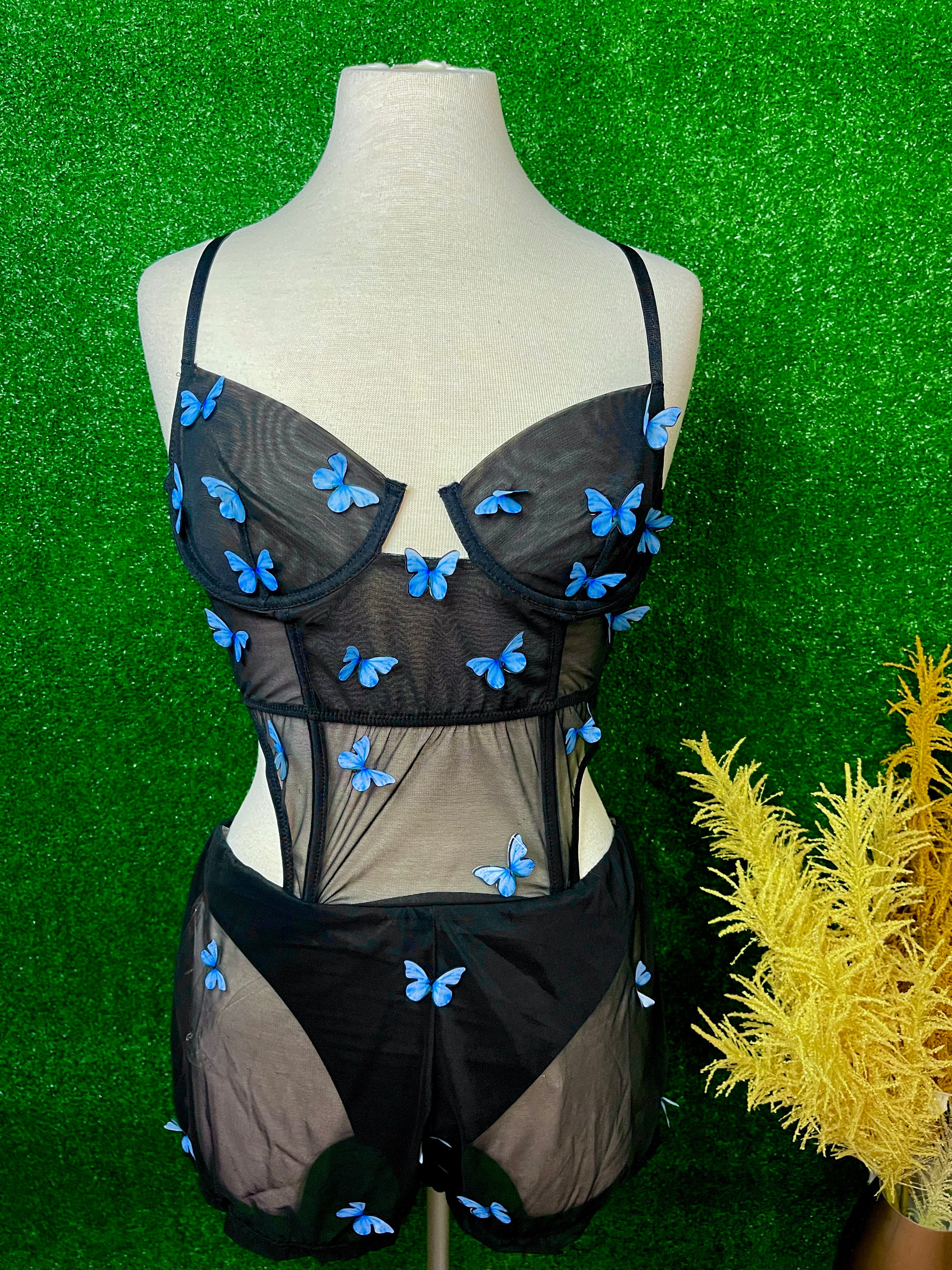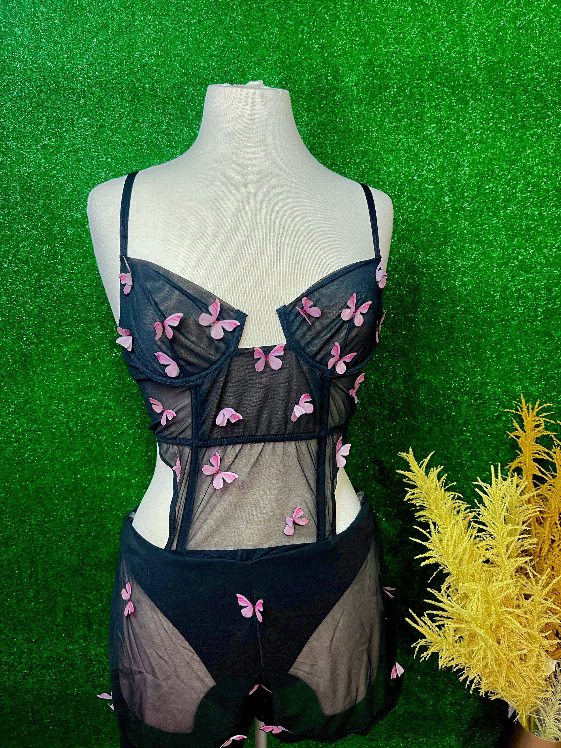 💗Butterfly mesh romper with adjustable spaghetti straps